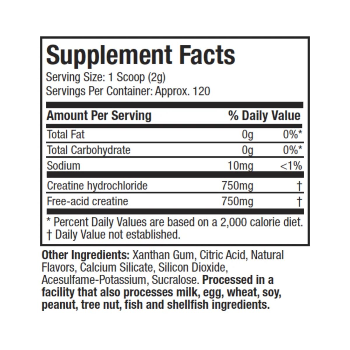 - Fórmula avanzada con creatina HCl y creatina monohidrato refinada