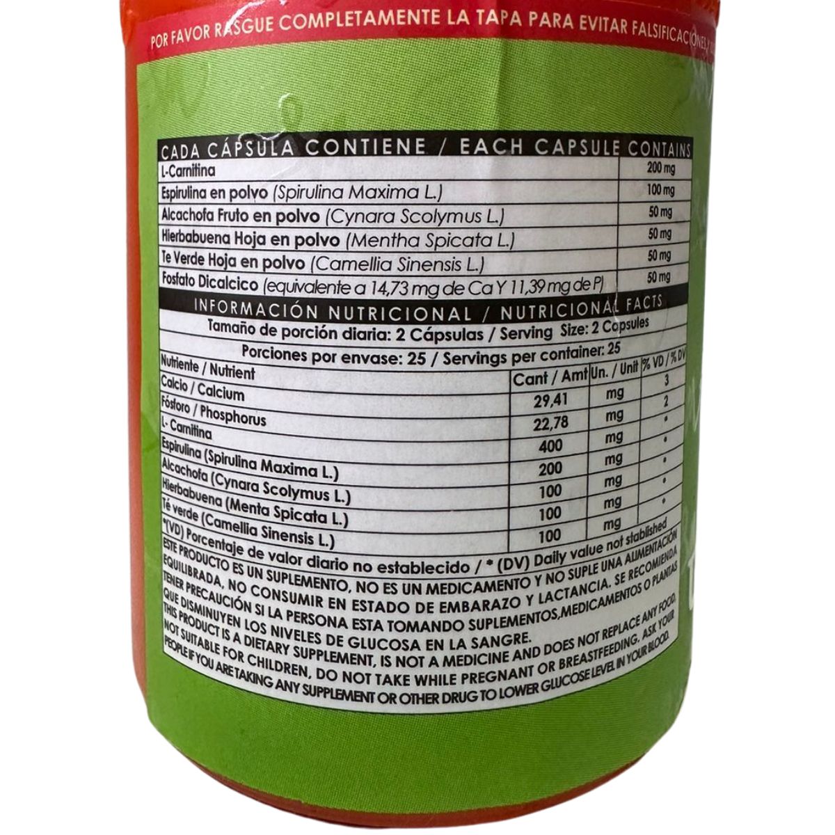 - Te Verde hojas en polvo ........ 50mg
