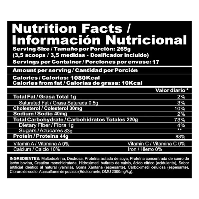 Megaplex Lite, combina en su fórmula por toma el 50% de la recomendación diaria de proteína, obtenida de tres fuentes con diferentes velocidades de absorción, buscando así lograr un mayor tiempo de saciedad. Contiene en su fórmula 1000mg de L-Carnitina y 400mcg de Picolinato de cromo, aporta 24 gramos de proteína por servicio.